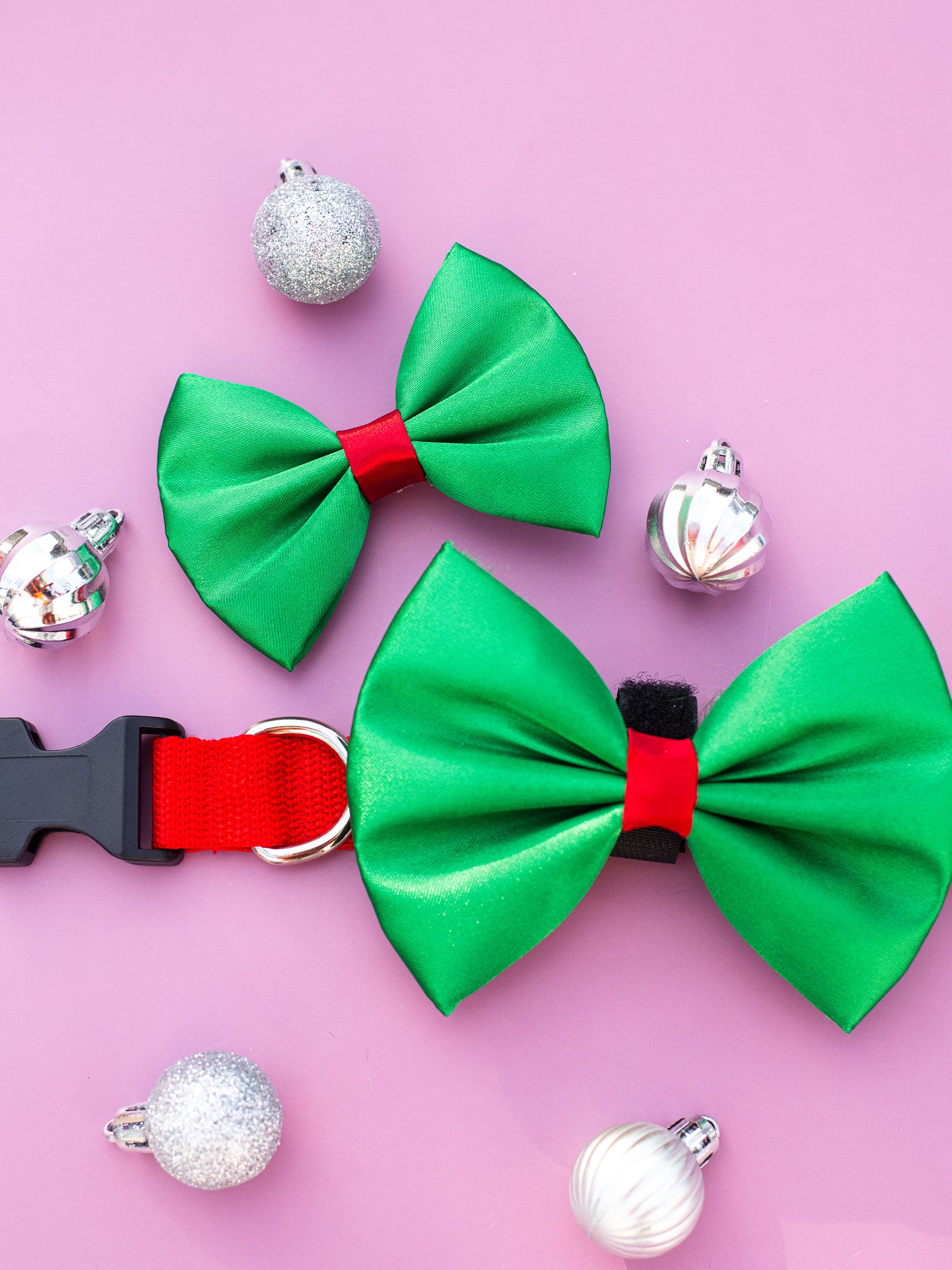 The human bow features an easy-to-wear alligator clip, while your dog’s bow fastens comfortably with Velcro, ensuring you both look and feel great.