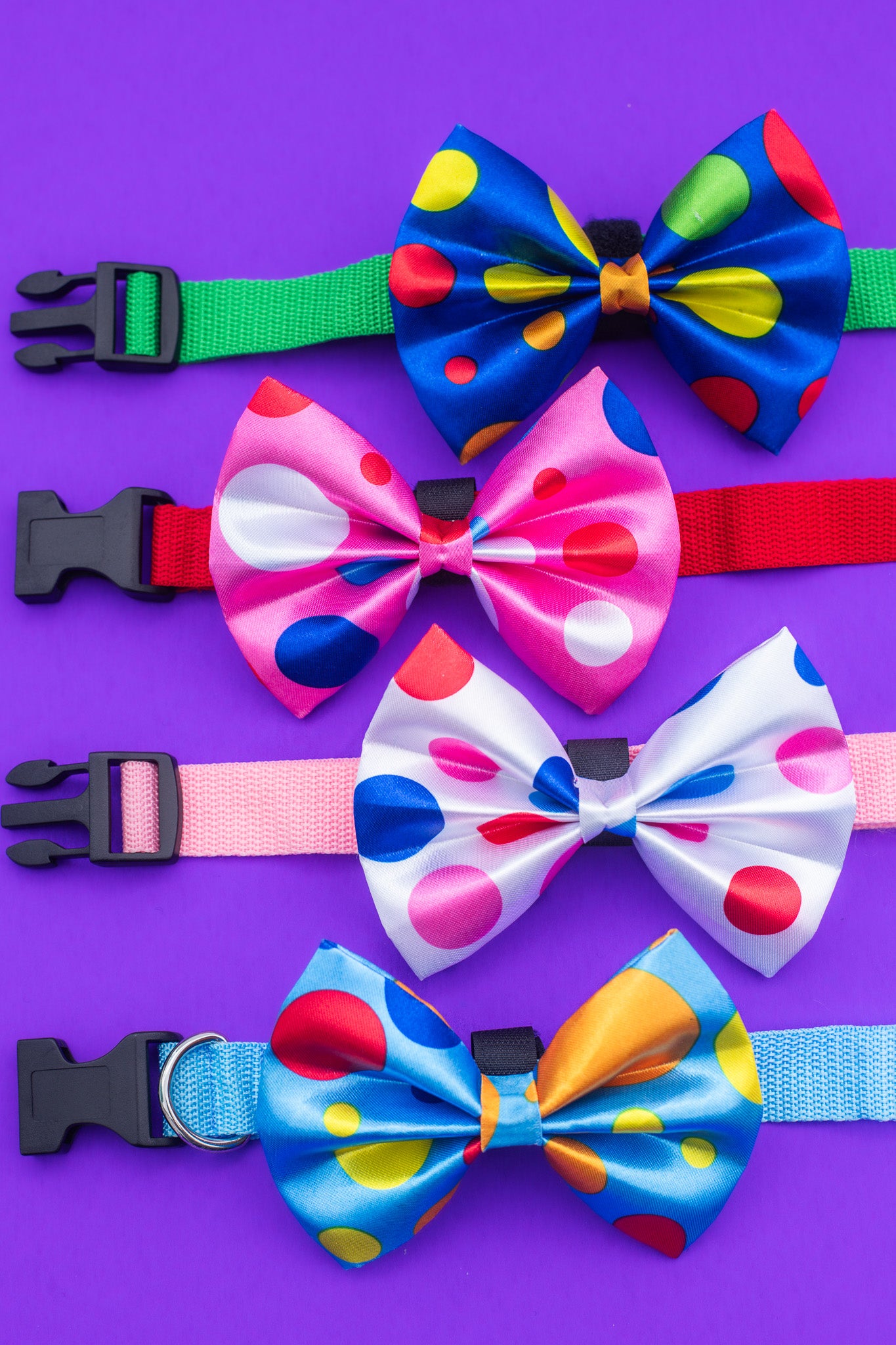 The bow comes in 3", 4", and 5" sizes to suit pups of all shapes and sizes, and is available in Blue, Pink, White, and Light Blue – classic birthday colors to match any celebration theme.