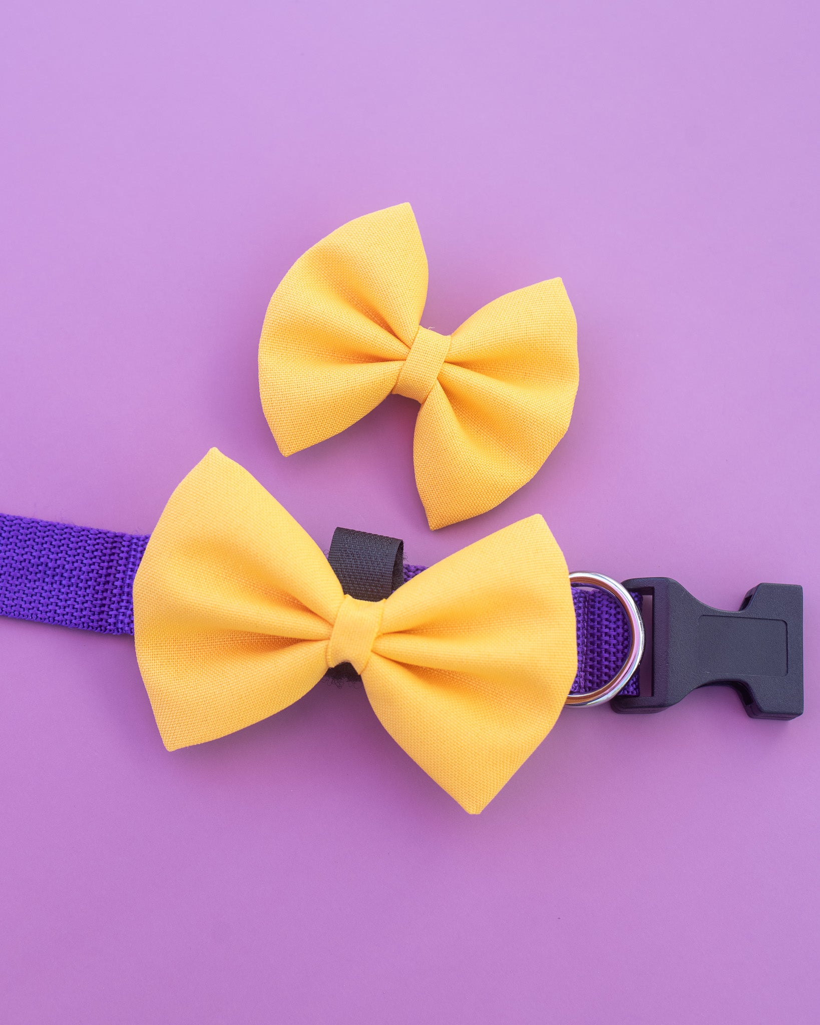 The human bow features an easy-to-wear alligator clip, while your dog’s bow fastens comfortably with Velcro, ensuring you both look and feel great.