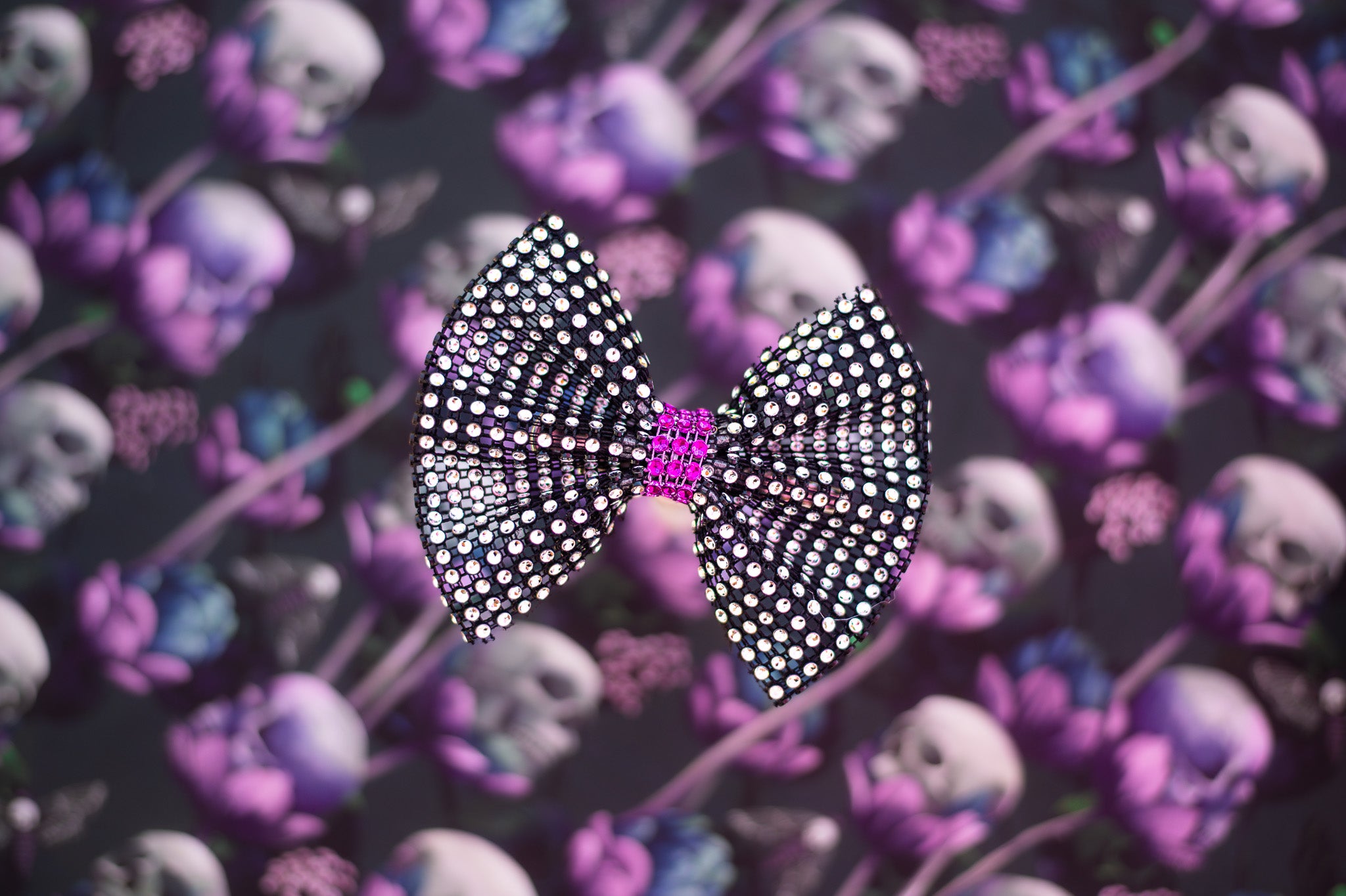 Bring the sparkle to spooky season with the Glitter Ghoul Halloween Hair Bow. This rhinestone-studded accessory is perfect for Halloween parties, themed photoshoots, or just adding a bit of glam to your fall outfit.