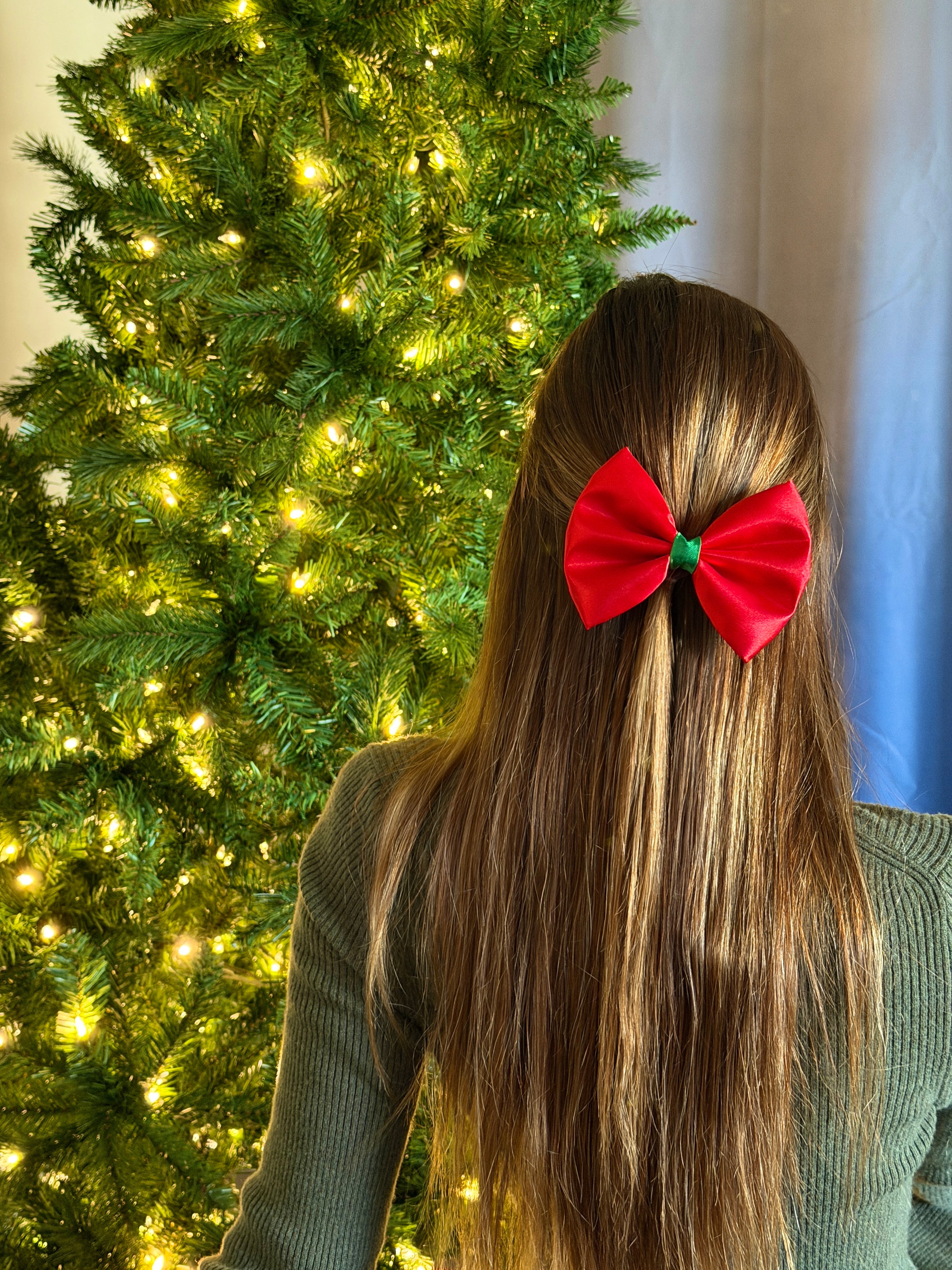 Bring the holiday sparkle to every room you walk into with our Red Satin Holiday Hair Bow! Available in 3”, 4”, and 5”, this festive favorite is your go-to accessory for parties, photos, and every merry moment in between.