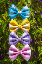 This bow is your new BFF! Available in blue, pink, purple, and yellow, it adds just the right amount of pop to any outfit.