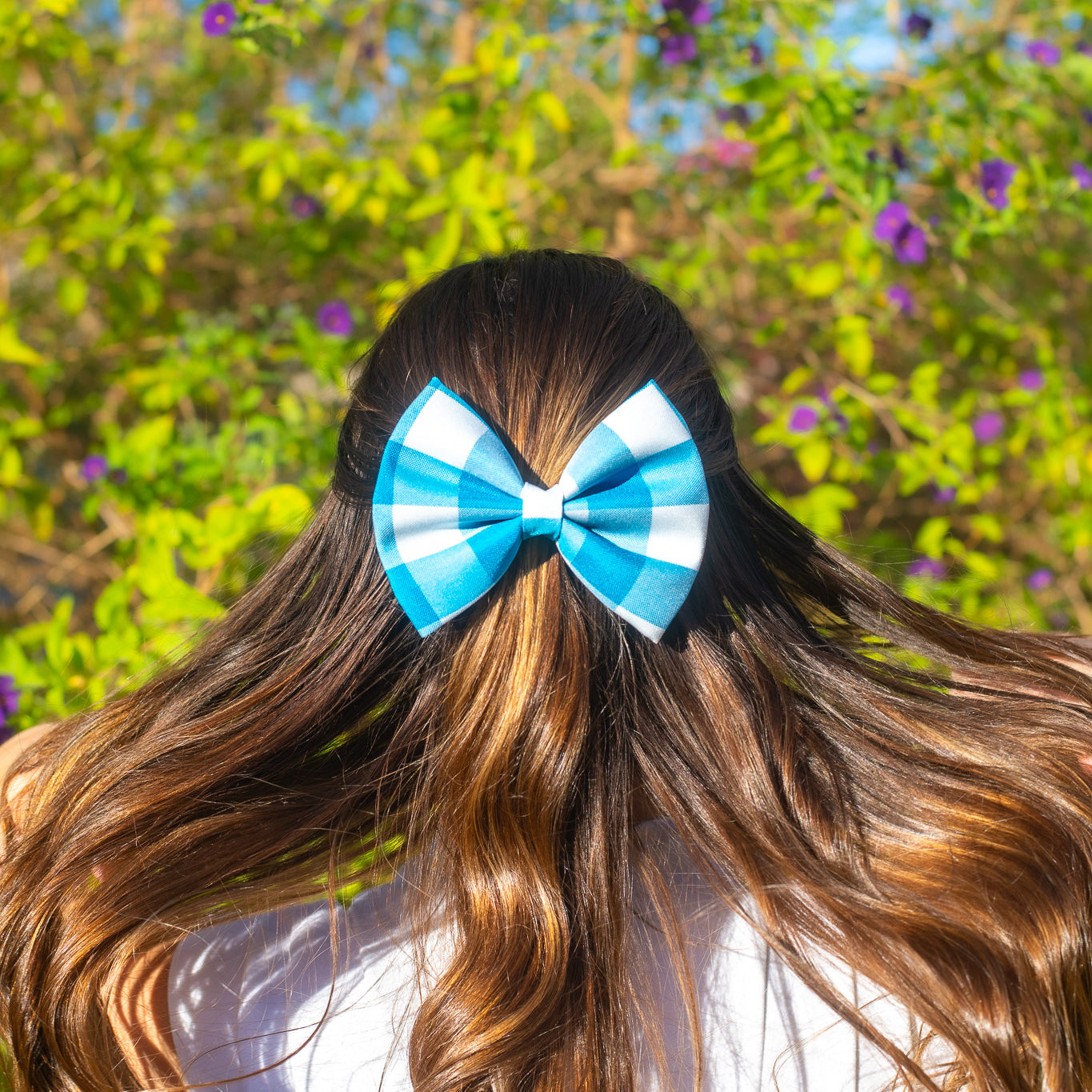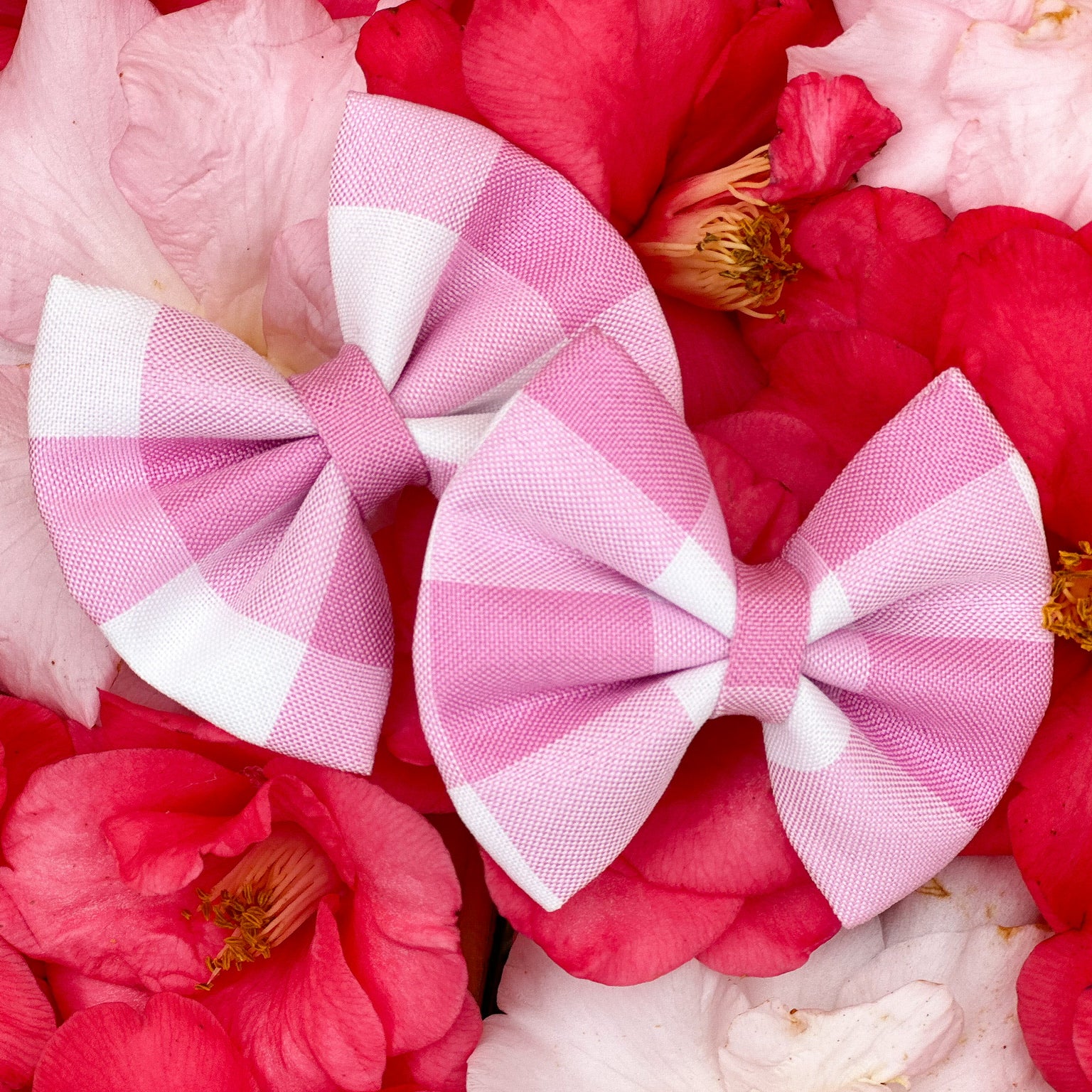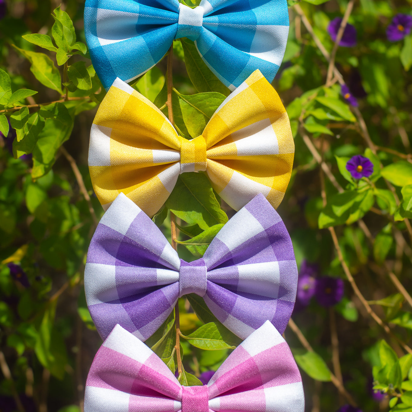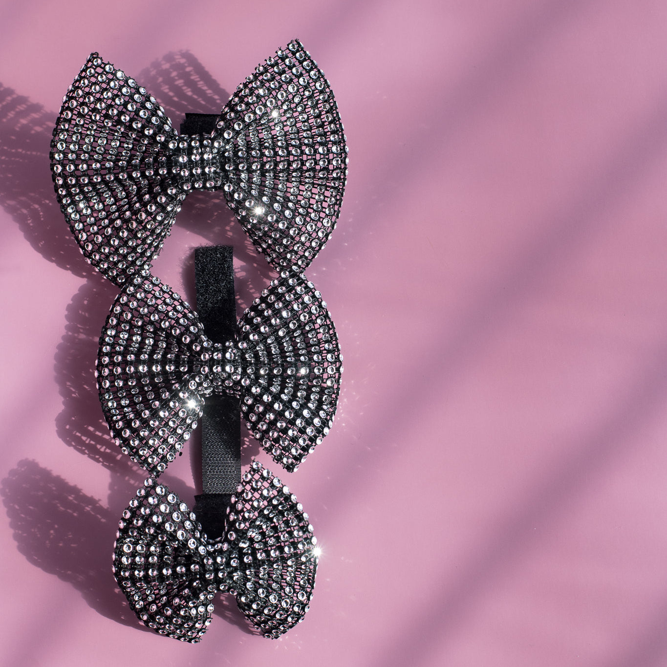 The human bow features an easy-to-wear alligator clip, while your dog’s bow fastens comfortably with Velcro, ensuring you both look and feel great.